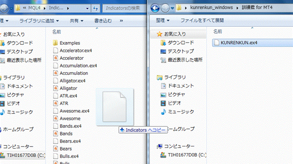 ダウンロードした「訓練君 For MT4」フォルダにある