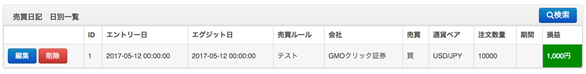 これで取引完了5分ごとにエッジテスターに取引結果が反映されます。